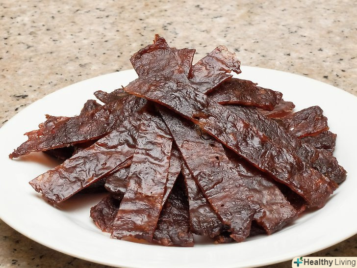 Приготуйте класичну в'ялену яловичину.В'ялена яловичина є одним з найпопулярніших страв. Почніть з пісного шматка м'яса, як флангу стейка або топ-туре, і просушіть тонкі смужки яловичини в дегідраторі або духовці.