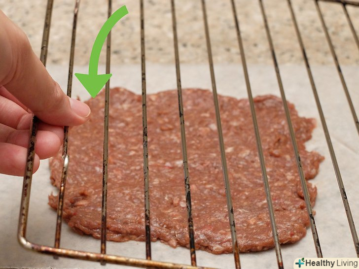 Створіть поглиблення, використовуючи лист дротяної сітки.обережно натисніть на дротяну сітку у верхній частині суміші, тільки застосовуючи тиск, достатній, щоб створити слабкий малюнок на верхній частині м'яса.- Розмажте рослинне масло по дротяній сітці, перш ніж накладати, щоб м'ясо не прилипало.
