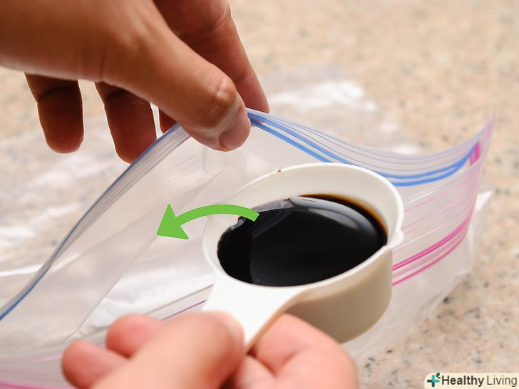 Приготуйте маринад.змішайте соєвий соус, патоку, лимонний сік, перець, і рідкий дим в 1 посудину (4 л) і накрийте пластиковим пакетом.- Щільно закрийте посудину і злегка струсіть його, щоб інгредієнти добре змішалися.