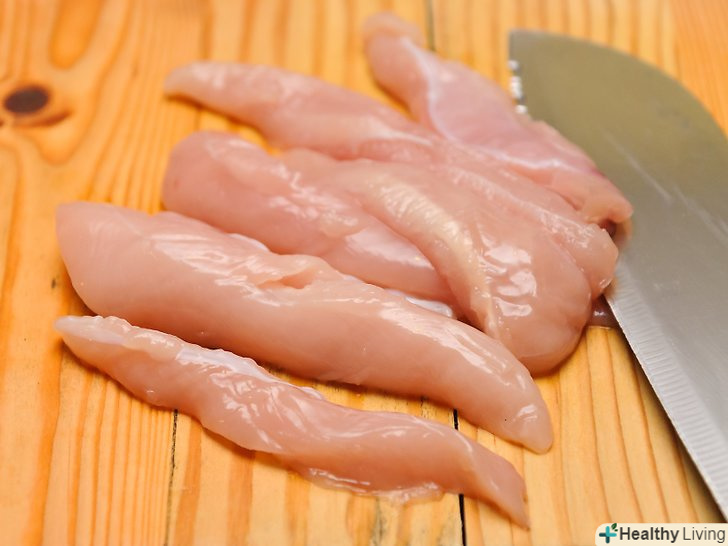 Розріжте курку на тонкі скибочки.використовуйте гострий кухонний ніж, щоб нарізати курку на скибочки, розміром 1/8 до 1/4 дюйма (3.175 в 6.35 мм).- Чим тонше скибочки, тим легше буде відриватися м'ясо і тим менше часу буде потрібно, щоб висушити його.