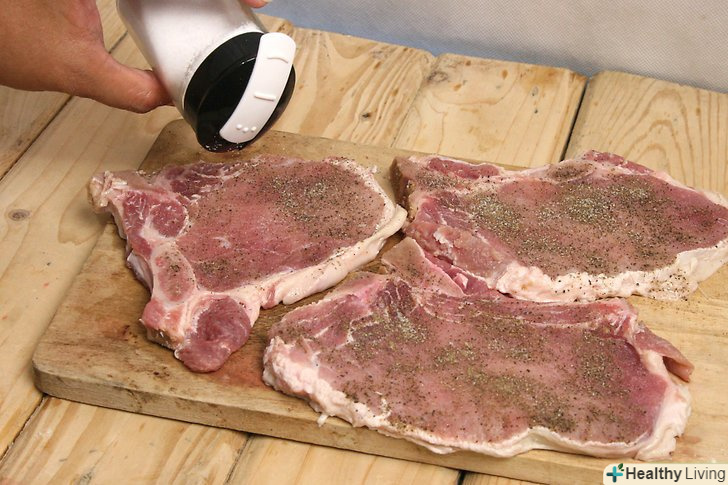 Приправте відбивні.посипте їх сіллю і перцем з обох сторін.