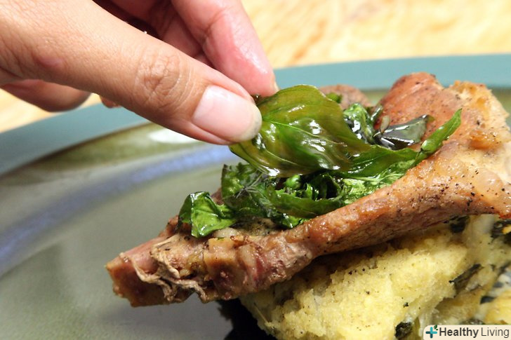 Посипте свинячі відбивні обсмаженою шавлією або базиліком.