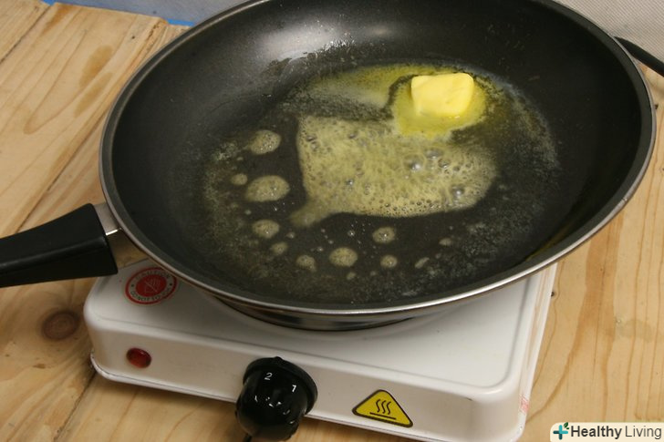 Розтопіть масло у великій глибокій сковороді.поставте її на плиту на середній вогонь і дочекайтеся, поки масло повністю розтане.
