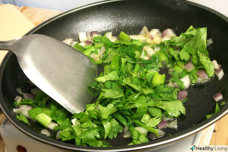 Обсмажте цибулю і селеру.обсмажуйте до тих пір, поки цибуля не стане напівпрозорим, це займе близько 5 хвилин.