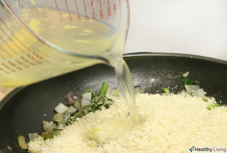 Залийте бульйоном. Перевірте, щоб інгредієнти були добре перемішані.