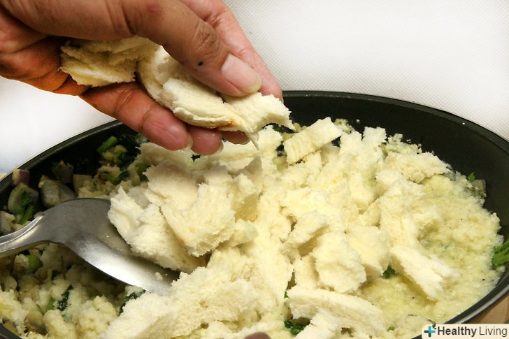 Додайте білий хліб.суміш повинна бути вологою, але не мокрою. При необхідності додайте ще хліба. Якщо суміш здається вам занадто сухий, додайте ще бульйону.