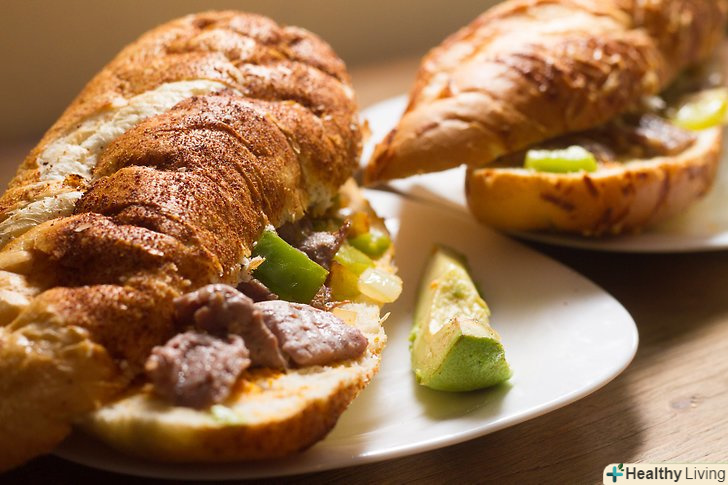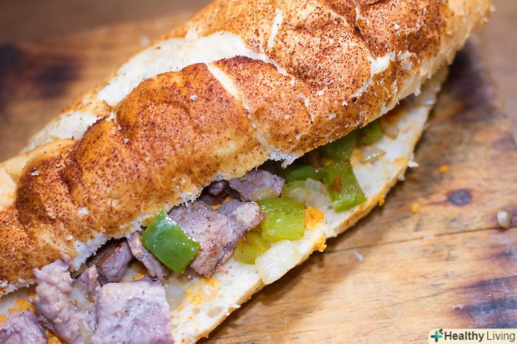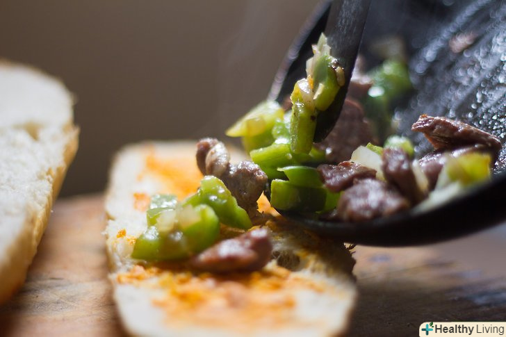 Візьміть злегка підморожений біфштекс і наріжте його дуже тонко.Тонкий шматок стейка приготується дуже швидко і дозволить різним смакам — сиру, цибулі, перців — як слід вбратися в хліб.- Ви можете нарізати трохи підморожений стейк великим і гострим шеф-кухарським ножем або можете використовувати звичайний ніж для легкої нарізки м'яса однакової товщини. У більшості людей немає спеціального ножа для м'яса; добре підійде простий гострий ніж, навіть якщо нарізка займе трохи більше часу.