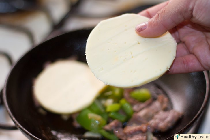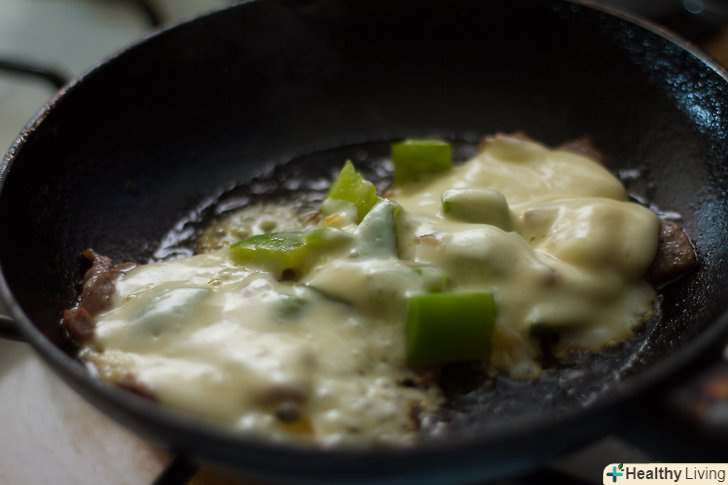 Вимкніть вогонь під сковородою і почекайте близько 30 секунд, поки розплавиться сир.