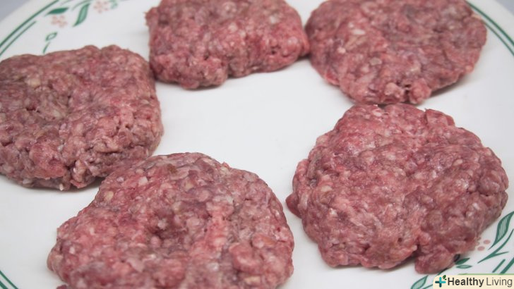 Купуйте хорошу яловичину з співвідношенням м'яса і жиру 80/20.занадто пісна яловичина буде не кращим вибором для котлет. Наприклад, не використовуйте відрізки з кількістю жиру 10% або менше. Якщо ви хочете приготувати більш пісні котлети, то використовуйте м'ясо зі співвідношенням 85/15, але 80/20 буде кращим рішенням.[1]- Найкраще купити свіже м'ясо і попросити м'ясника подрібнити його на м'ясорубці.