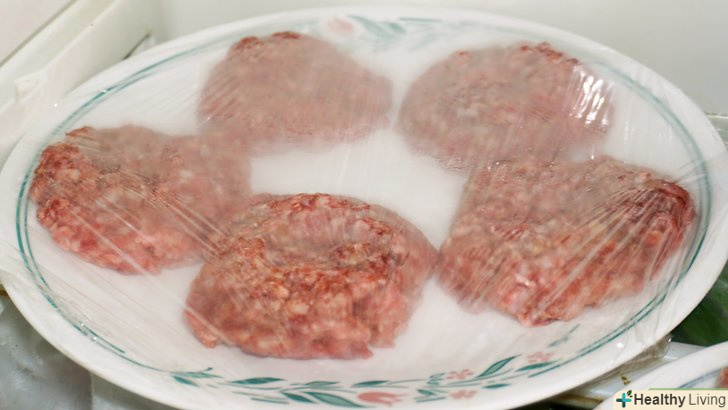 Приберіть котлети в холодильник на 20 хвилин. Накрийте котлети харчовою плівкою і охолодіть. Холодні котлети краще тримають форму при обсмажуванні, і в цьому випадку м'ясо в центрі котлети не приготується занадто швидко.[5]- Не залишайте котлети при кімнатній температурі, щоб не допустити розвитку бактерій.