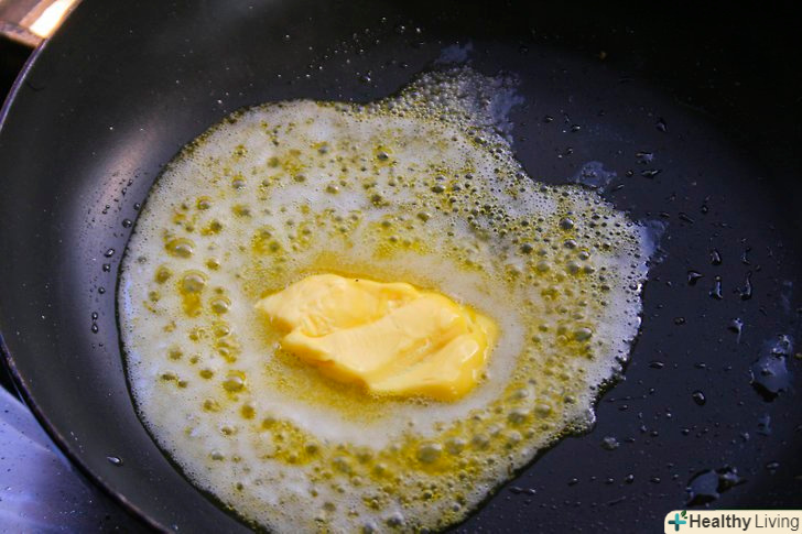 Розтопіть вершкове масло у важкій сковороді з довгою ручкою.поставте її на плиту. Додайте вершкове масло, після чого включите сильний вогонь.- Нагрівайте сковороду, поки не розтопіть масло. Періодично повертайте її, щоб масло рівномірно розтеклося.