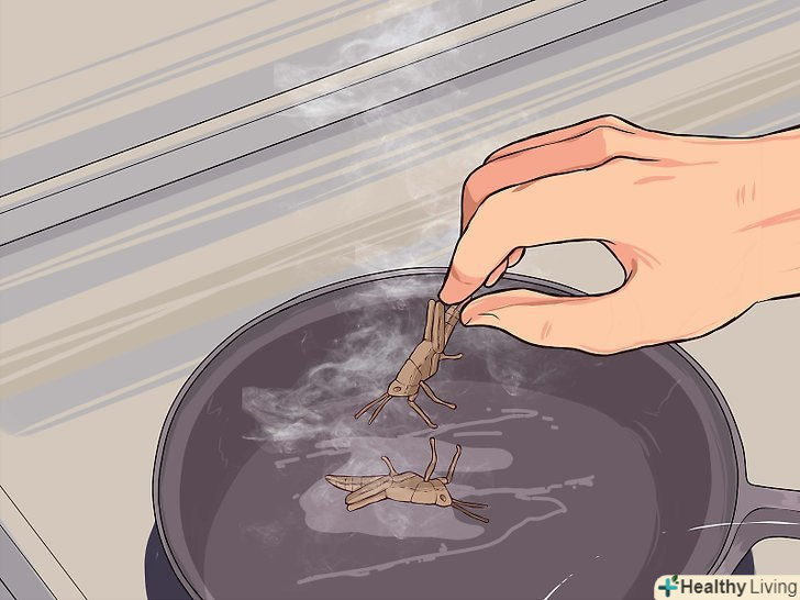 Приготуйте смажені в маслі коники.це - ще одне просте і смачне блюдо. Просто видаліть крила і ноги, помийте коників, і приготуйтеся обсмажити їх. Ось те, що вам потрібно робити:- Маринуйте коників в суміші соку лимона і соку лайма, принаймні, годину.