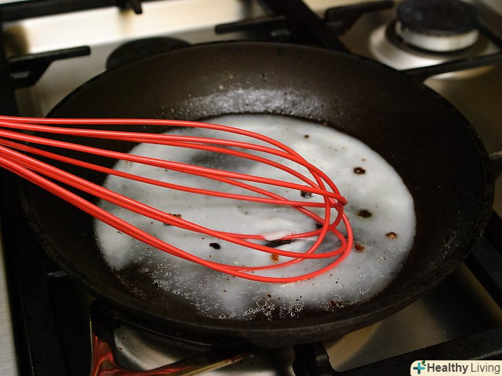 Додайте кілька крапель води в суміш.вода повинна змішатися з іншими інгредієнтами при перемішуванні суміші антипригарним приладом. Після того, як вона перетвориться в соус, вимкніть вогонь.