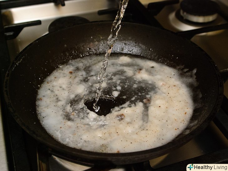 Використовуйте м'ясний жир, зібраний після приготування м'яса і помістіть його в антипригарну сковороду.додайте трохи масла і обережно почніть очищати стінки сковороди за допомогою антипригарних приладдя.