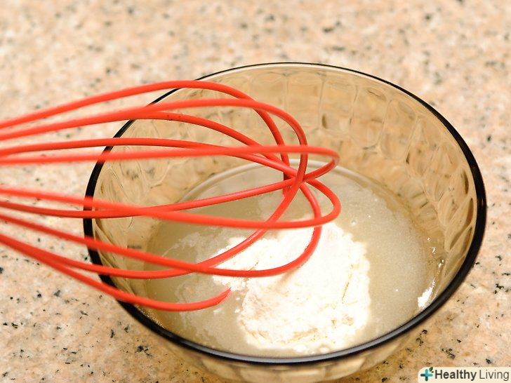 Почніть потроху додавати борошно, поки не помітите, що вона розчинилася і зробила суміш гущі.Будьте обережні, щоб не додати занадто багато борошна, використовуйте всього кілька крихт.