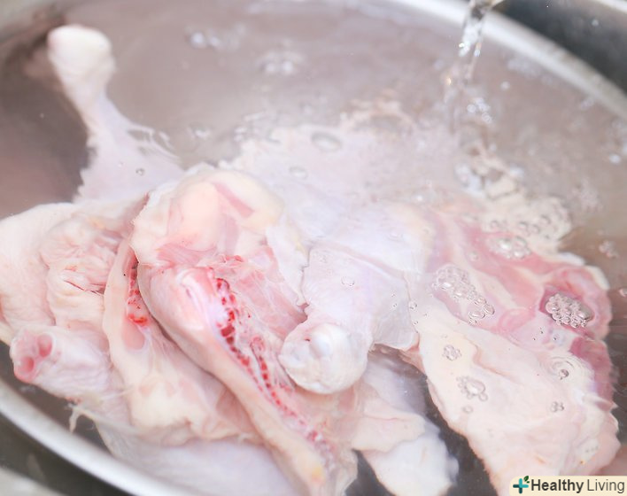 Промийте курячі ніжки.дістаньте ніжки з пакета і ретельно промийте їх холодною водою. Видаліть всі надірвані шматочки шкірки або жиру.- Після того як ви вимили м'ясо, промакніте його паперовим рушником. Це надалі додасть м'ясу аромат і зробить скоринку хрусткою при приготуванні.