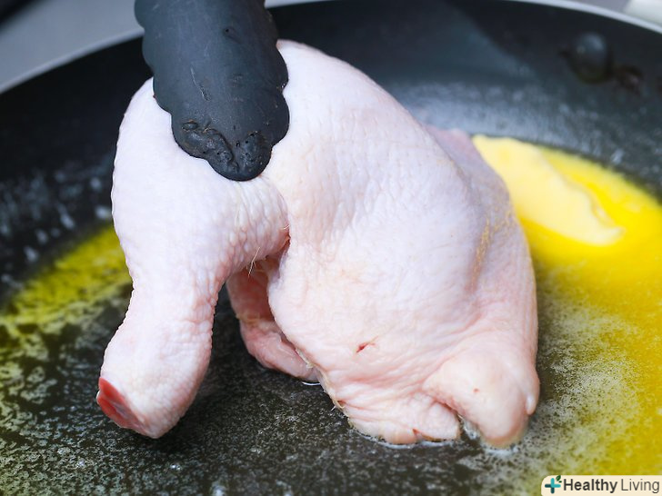 - Щоб блюдо було менш жирним, можете видалити шкірку з кожної курячої ніжки. Використовуйте чисті кухонні ножиці або ніж для відділення шкірки від м'яса.[4]