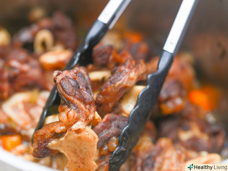 Налийте курячий бульйон і знову доведіть суміш до кипіння.зменшіть вогонь і кип'ятіть на повільному вогні протягом 2-2,5 годин.- Коли закінчите, м'ясо повинно вийти дуже ніжним.