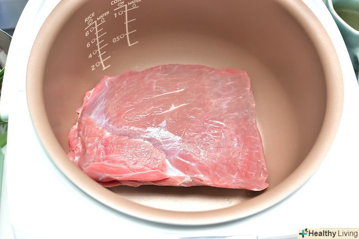 Покладіть м'ясо в медленноварку або казанок.виставте низьку температуру.- Більшість медленноварок і казанків продаються з інструкцією, щоб ви знали, скільки часу займе готування м'яса при різних температурах. Використовуйте керівництво, щоб дізнатися, яку температуру виставити.