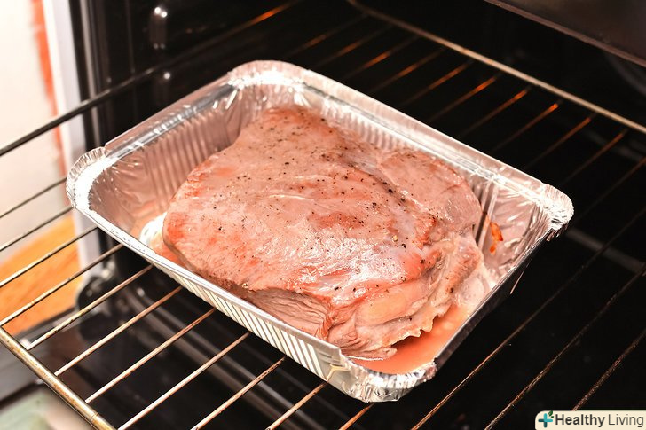 Накрийте м'ясо кришкою або алюмінієвою фольгою.поставте в духовку і смажте протягом 1 1/2 години або 30 хвилин на кожні 500 гр.
