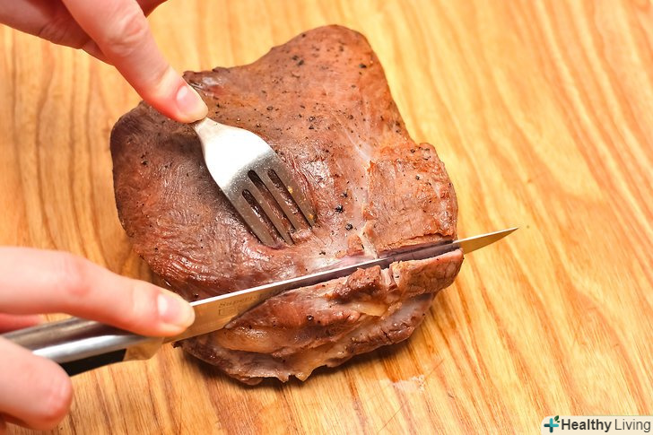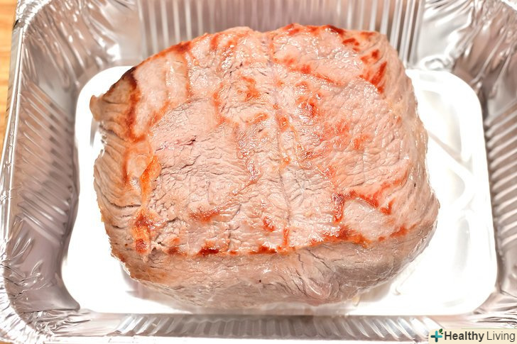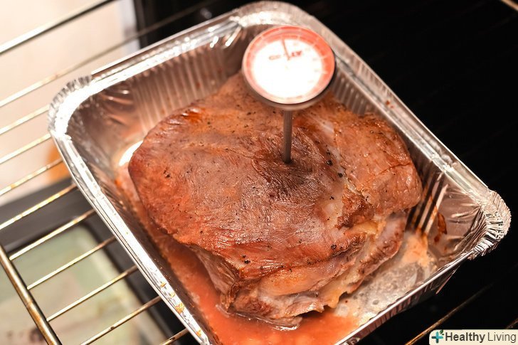 Перевірте печеня на готовність.зніміть кришку або фольгу зі сковороди і вставте термометр для м'яса в м'ясо.- М'ясо з кров'ю готове, якщо його температура досягла 50 °С.