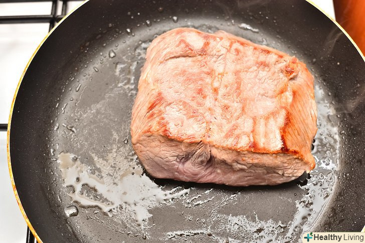 Розігрійте масло у великій жаровні або сковороді.покладіть м'ясо в сковороду і готуйте, поки воно не підрум'яниться з усіх боків.- Не рухайте м'ясо в сковороді, поки воно не підрум'яниться і не буде готове до перевертання. Переміщення м'яса не дасть йому добре підрум'янитися.