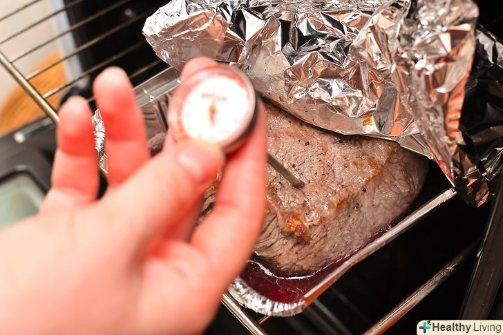 Перевірте м'ясо на готовність.зніміть з каструлі кришку або фольгу і вставте термометр для м'яса в м'ясо. Дотримуйтесь посібника вище для приготування м'яса з кров'ю, середньопрожареного м'яса, майже повністю просмаженого м'яса або повністю просмаженого м'яса.