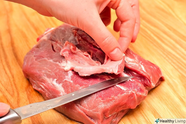 Зріжте з м'яса зайвий жир.Будьте обережні, не видаляйте занадто багато жиру, тільки жорсткі або товсті частини.