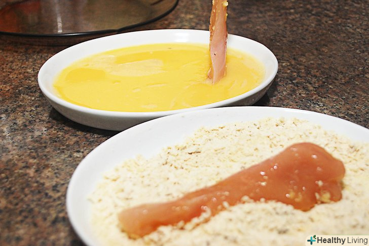 Умочіть філе спочатку в яйця, потім в панірувальні сухарі.