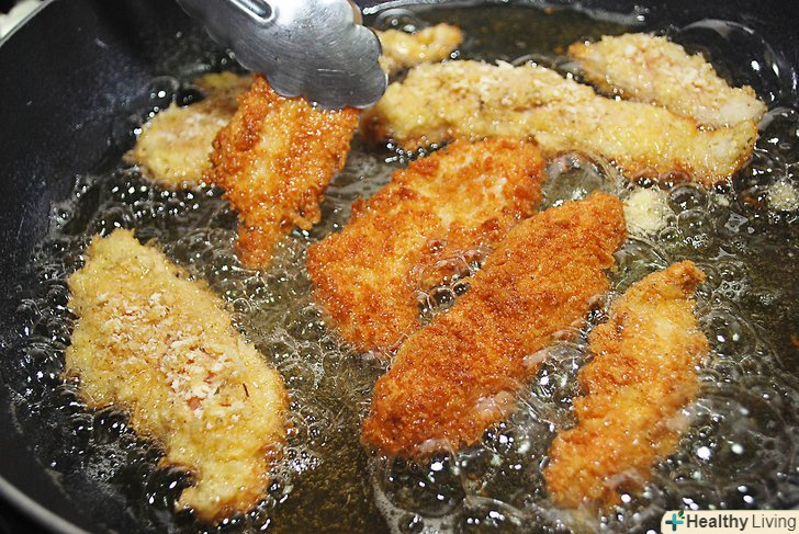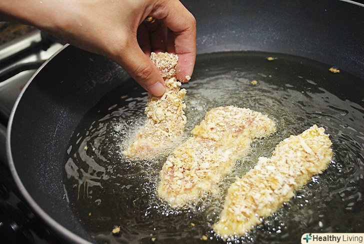 Коли масло розігріється, опустіть філе в сухарях на сковорідку.