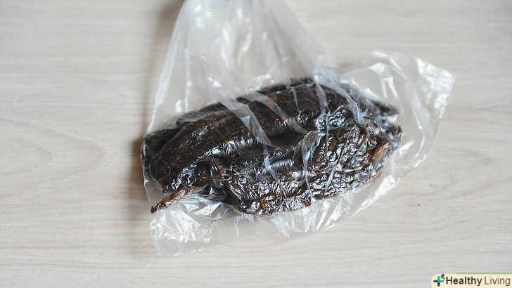 - Покладіть в'ялене м'ясо в паперовий пакет на 1-2 дні, якщо воно недостатньо просохло.якщо після охолодження в'ялене м'ясо все ще занадто вологе, то спробуйте покласти шматочки м'яса в паперовий пакет і залиште їх там на кілька днів. Постійно перевіряйте рівень вологи в'яленого м'яса. Коли воно буде здаватися досить сухим, перекладіть в герметичний контейнер.[16]