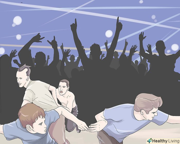 - Якщо ви боретеся з штовханиною занадто багато і хочете вибратися з кола, НЕ нагинайтеся, або ви ризикуєте впасти і отримати травму, а люди навколо вас настануть на вас зверху. Підніміть руки вгору до обличчя і використовуйте їх в якості стабілізаторів під час роботи по виходу з кола. Не панікуйте: більш важливо залишатися у вертикальному положенні. Нехай це займе більше часу для виходу, ніж будете поспішати з ризиком впасти. Також, якщо ви можете, сказати комусь на стіні кола схопити вас і витягнути.
