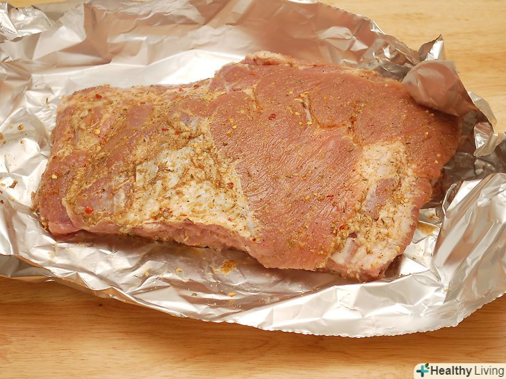 - Насипте суху суміш для натирання на обидві сторони ребер. Ви можете приготувати власне натирання, використовуючи коричневий цукор, чорний і білий перець, червоний перець і інші спеції, або просто купите сухе натирання в продуктовому магазині.