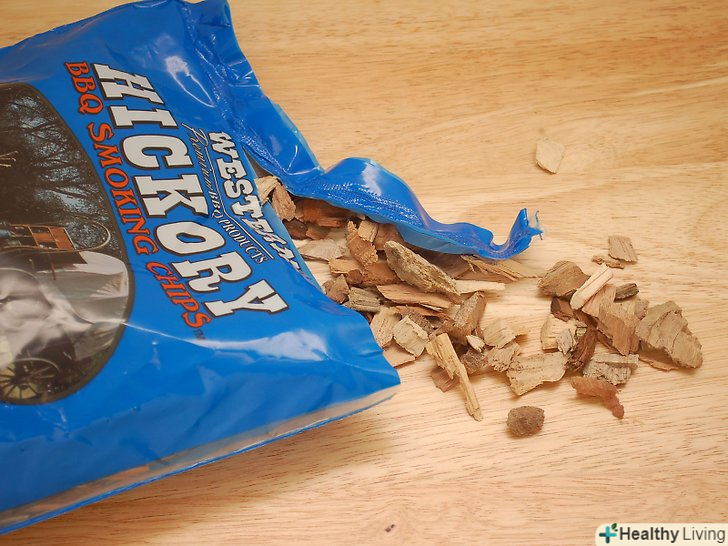Виберіть вид стружки, яку ви хочете використовувати, щоб коптити м'ясо.Мескіт і гікорі - популярні і надають м'ясу особливий аромат.