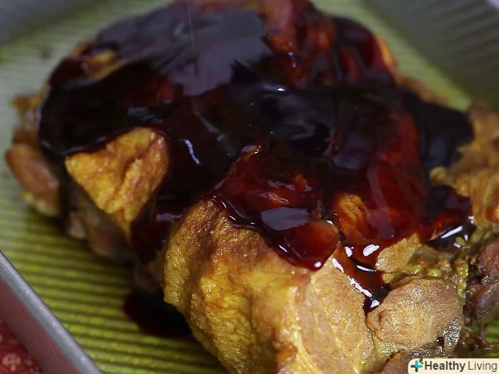 Полийте ребра соусом барбекю.ви можете вилити його безпосередньо на м'ясо у формі для запікання.[2]