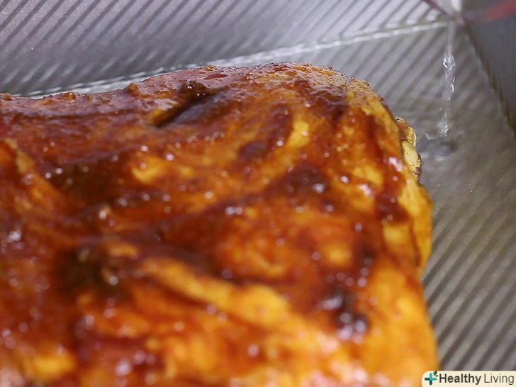 Налийте у форму приблизно 0,6 см води.це збереже вологість м'яса і запобіжить пригорання нижній частині. Налийте воду безпосередньо на алюмінієву фольгу.