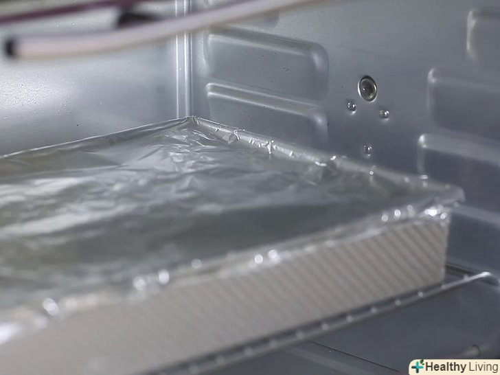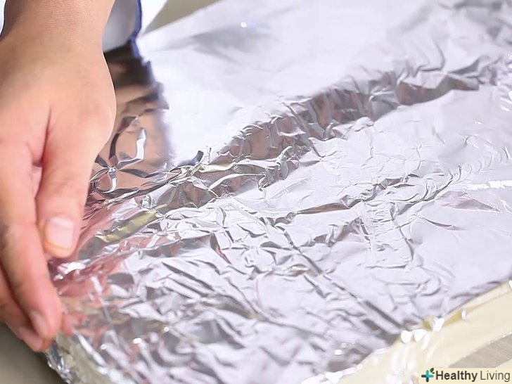 Накрийте форму алюмінієвою фольгою, щоб вийшла намет.спочатку загніть краю фольги, а зверху покладіть ще один шар. Закріпіть фольгу на ручках форми, щоб вона залишалася на місці. Переконайтеся, що немає ніяких отворів.