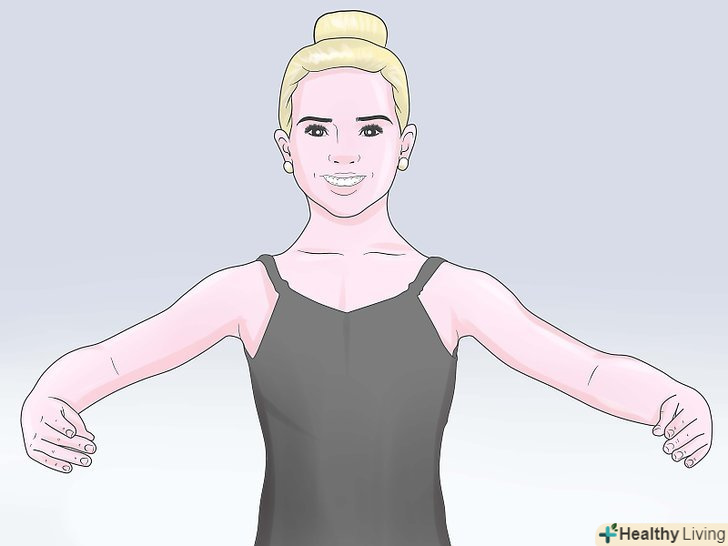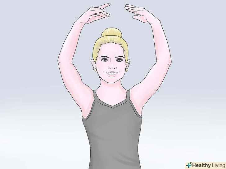 Щоб виконати першу позицію руками, уявіть, ніби ви тримаєте велику монету, обхоплюючи її руками.руки повинні складати коло і перебувати на відстані близько 7,6 см від вашого тіла.