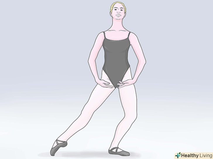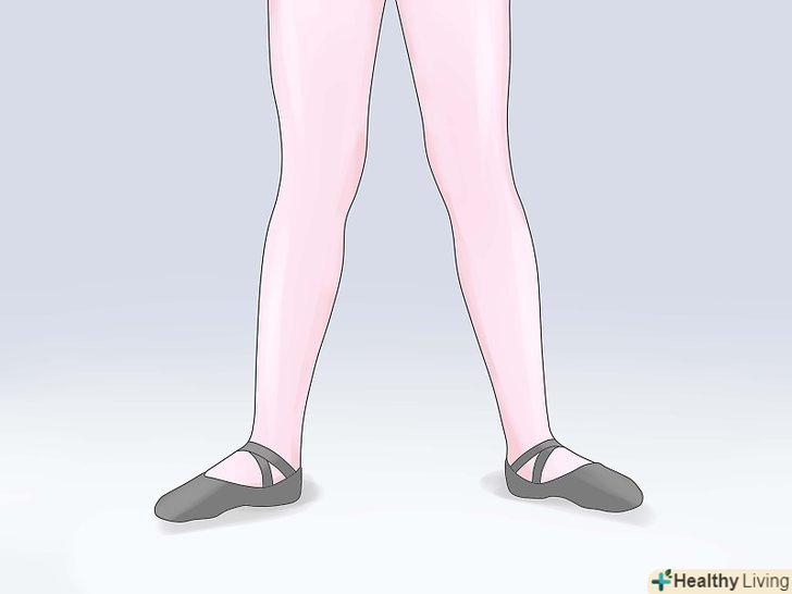 Щоб виконати першу позицію ногами, поставте ваші п'яти разом і розведіть шкарпетки.переконайтеся, що ваші коліна також розгорнуті назовні. Проте, якщо ви є володарем дуже довгих ніг, то маєте можливість відкрити свої щиколотки на пару сантиметрів, віддаляючи їх один від одного при зіткненні колін.