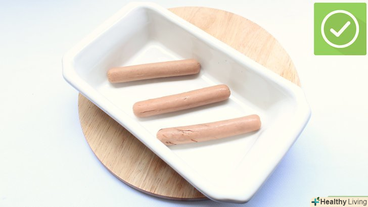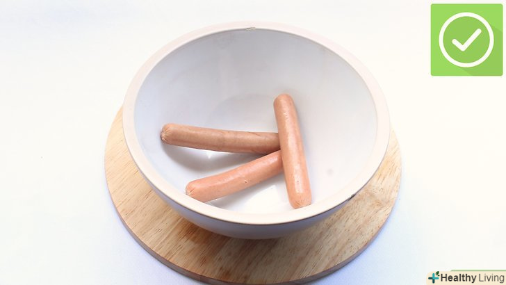 Помістіть сосиску для хот-дога в мікрохвильову піч.використовуйте пластикову або скляну тарілку, а не металевий посуд. Переконайтеся, що блюдо досить глибоке, щоб було достатньо місця для сосисок.- Залийте сосиски водою.вона може кипіти, тому використовуйте глибокий посуд, щоб вода, принаймні, на кілька сантиметрів була нижче краю тарілки.