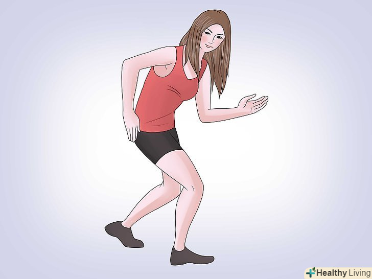Зигзаг.Встаньте прямо, підніміть праву ногу, перехрестіть її з лівою ногою і відірвіть пальці від землі. Потім перенесіть ногу вправо і знову відірвіть пальці від землі. Зігніть праве коліно і закиньте ногу за спину, відхилившись при цьому назад і торкнувшись ноги лівою рукою.