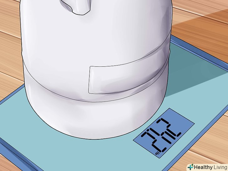 Зважте контейнер на звичайних вагах, щоб дізнатися його загальну вагу.припустимо, що вага вашого контейнера 10.8 кг.