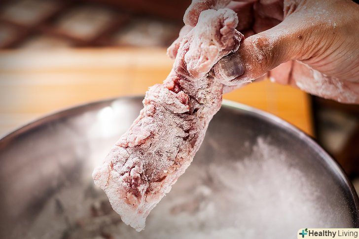 Злегка посипте ребра сумішшю двічі або тричі за раз і помістіть у фритюрницю.
