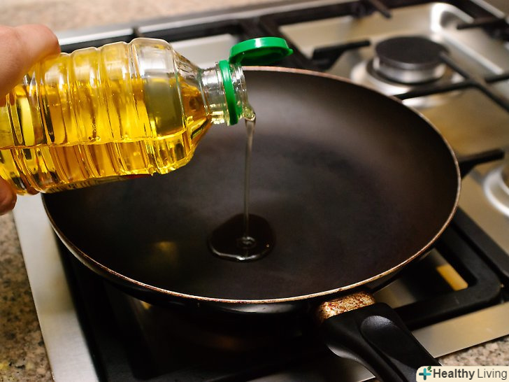 Розігрійте масло.Налийте масло у велику сковороду і поставте її на плиту на швидкий вогонь.