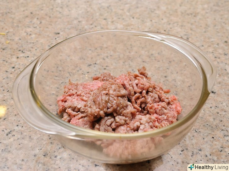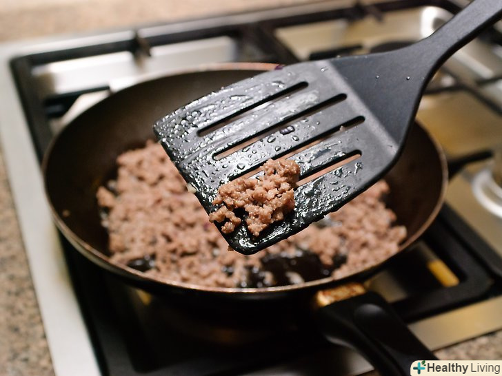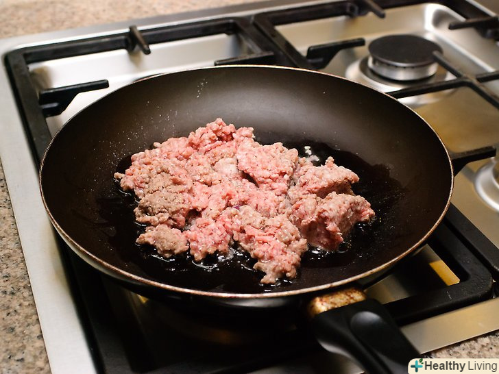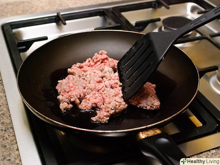 Викладіть фарш на сковороду.покладіть фарш в центр нагрітої сковороди. Розділіть його на великі шматки, використовуючи жорстку жароміцну лопатку.- Готуйте тільки свіжий або розморожений фарш.