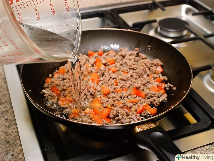 - Якщо рідина випарується перш, ніж приготується фарш, додайте ще води. Доливайте воду порціями об'ємом 1/4 склянки.