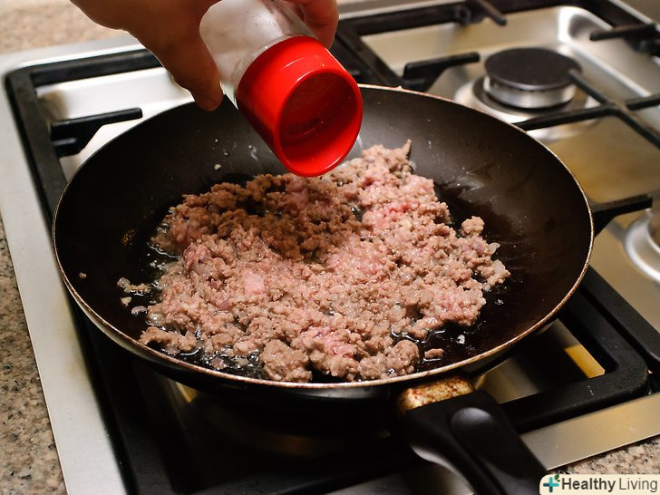 Перевірте готовність фаршу.коли фарш рівномірно обжарится, візьміть шматочок побільше, надломити його і перевірте ступінь прожарювання. М'ясо не повинно бути рожевим всередині.- Визначити готовність можна на око. Якщо ж ви хочете використовувати термометр для м'яса, температура фаршу всередині повинна бути 70 °С.