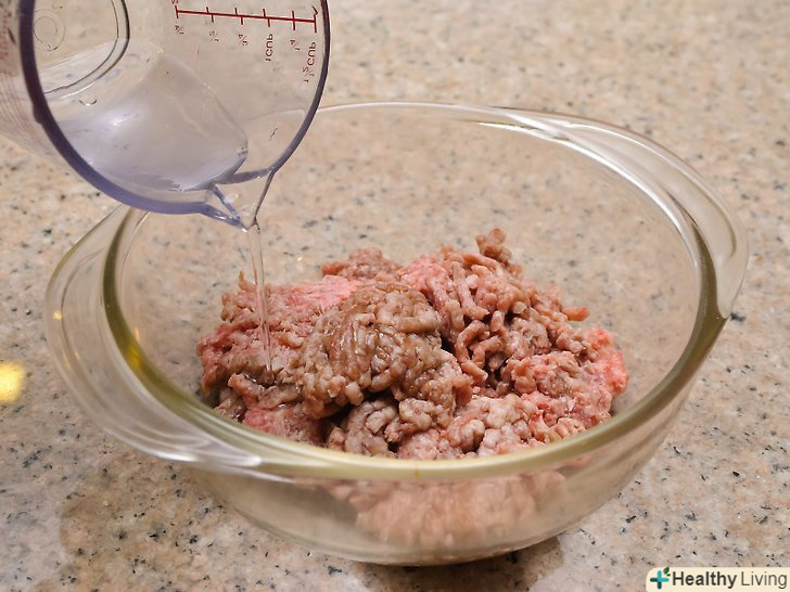 Додайте воду.налийте в ємність воду приблизно на півсантиметра.- Після закінчення готування в мікрохвильовій печі їжа може виявитися пересушеною. Вода зволожить повітря і охоронить фарш від пересихання.