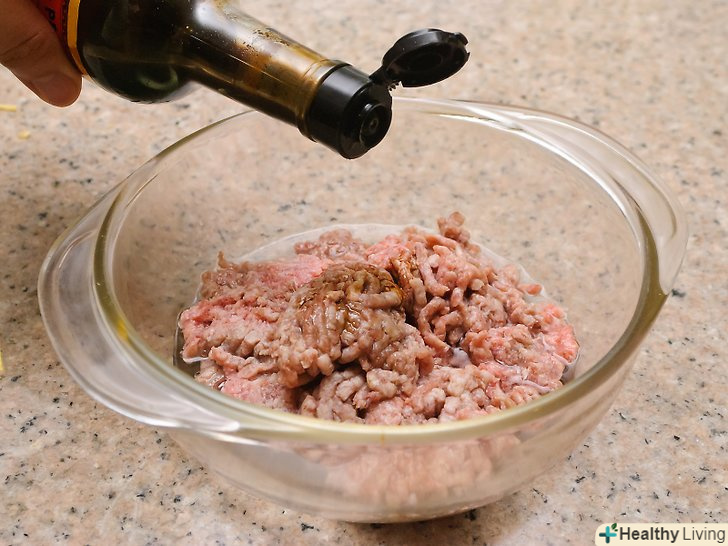 Розігрійте масло.налийте у велику сковороду 1 чайну ложку рослинної олії. Поставте сковороду на плиту на швидкий вогонь.[1]- Цей крок необов'язковий. У більшості сортів фаршу міститься досить жиру, тому можна готувати без масла. Однак змазування сковороди маслом запобігає пригорання їжі. Це може стати в нагоді, якщо у вас сковорода з нержавіючої сталі.