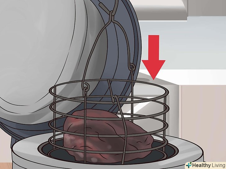 Перевірте температуру вашої коптильні.якщо ви коптите м'ясо за допомогою цього приладу, то важливим моментом є перевірка внутрішньої температури. Більшість коптильнею продаються вже з вбудованим вимірником.- Налаштуйте температуру. У деяких коптильнях є кругова шкала, так що Ви зможете зменшувати або піднімати температуру, коли в інших можна включити тільки на найвищу температуру – 107, 22 °С.